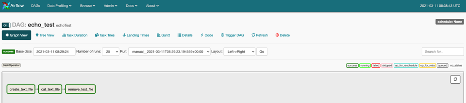 여기까지 Airflow를 설치하고, 세상에서 가장 간단한 Workflow를 만든 후 실행해보았습니다.